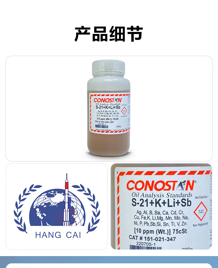CONOSTAN 10ppm多元素混合標油主要應用于化學檢測儀器,輔助檢測化工品性能。