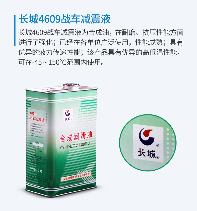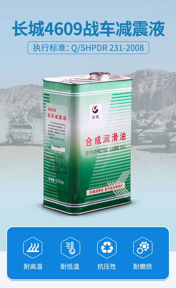 長城4609戰車減震液為合成油,在耐磨、抗壓性能方面進行了強化;已經在各單位廣泛使用,性能成熟;具有較好的液力傳遞性能;該產品具有較好的高低溫性能,可在-45 ~ 150℃范圍內使用。