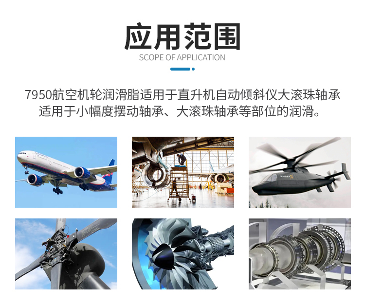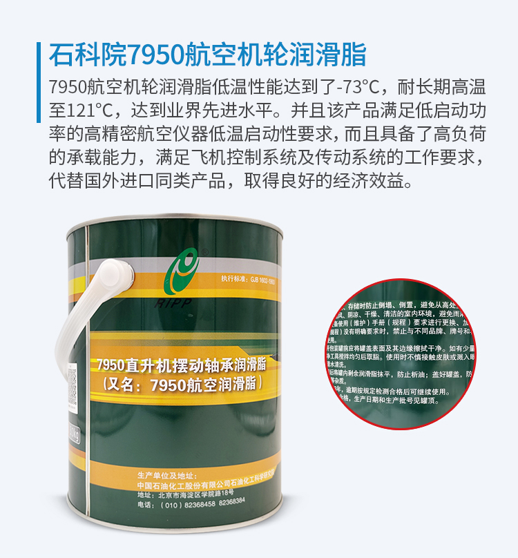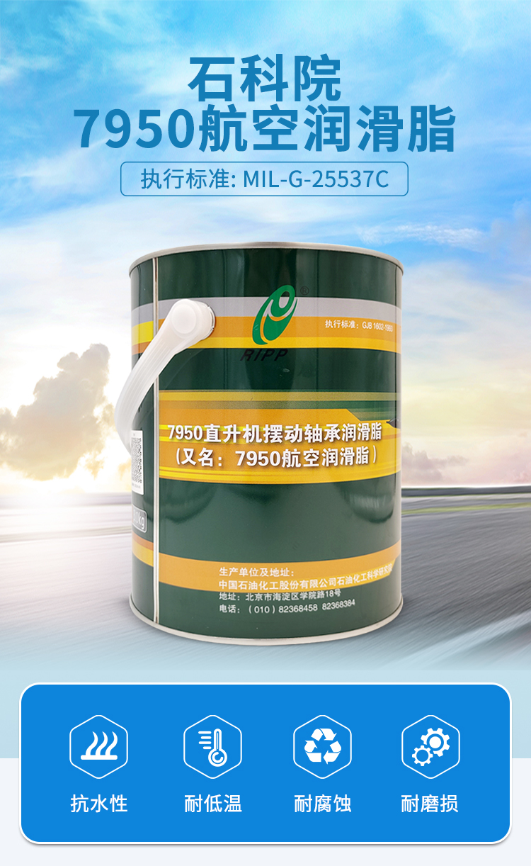 7950航空機(jī)輪潤滑脂是我國軍方及國產(chǎn)飛機(jī)廣泛使用的潤滑產(chǎn)品。取代了80年代以前使用的7008、7008-1及7012航空潤滑脂,其低溫性能達(dá)到了極低溫至-73℃,耐長期高溫至121℃,達(dá)到業(yè)界先進(jìn)水平。并且該產(chǎn)品優(yōu)良的低溫啟動(dòng)轉(zhuǎn)矩及運(yùn)轉(zhuǎn)轉(zhuǎn)矩,滿足低啟動(dòng)功率的高精密航空儀器低溫啟動(dòng)性要求,而且具備了高負(fù)荷的承載能力,滿足飛機(jī)控制系統(tǒng)及傳動(dòng)系統(tǒng)的工作要求,代替國外進(jìn)口同類產(chǎn)品,取得良好的經(jīng)濟(jì)效益。