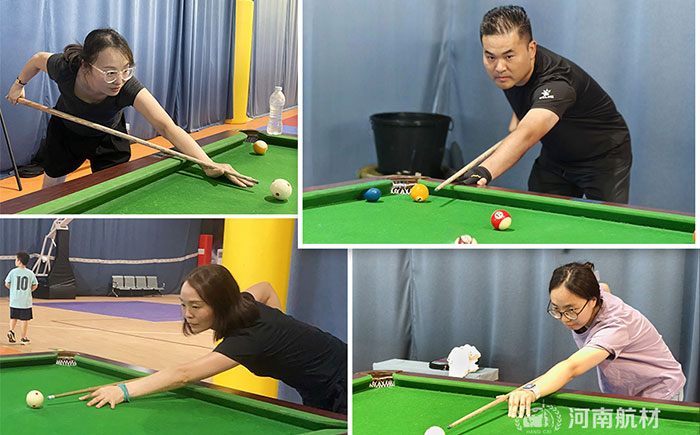 臺球桌成為他們的競技場,袁總一襲黑衣修身勾勒沉穩氣場,俯身架桿似磐石,視線銳利穿透彩球軌跡。球桿疾推白球沖出,這是策略與技術的完美結合!場邊的伙伴或靜觀沉思,或躍躍欲試,沉穩之中見鋒芒,正是航材人工作中的細致底色。